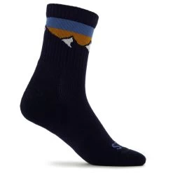 The Merino Quarter Tech Rib Mountains Socks from Stoic impress with a functional mix of materials. Their high proportion of merino wool inhibits odours, doesn’t feel scratchy and is pleasantly breathable. Not to mention that they’re quick-drying, too. Thanks to their durable synthetic fibre, you get hard-wearing walking socks with high levels of comfort that for are perfect for hikes and long trips. Plus, the colourful mountain silhouette on the collar provides a visual highlight that makes them fashionable enough for everyday life, as well as for that classic outdoor look.